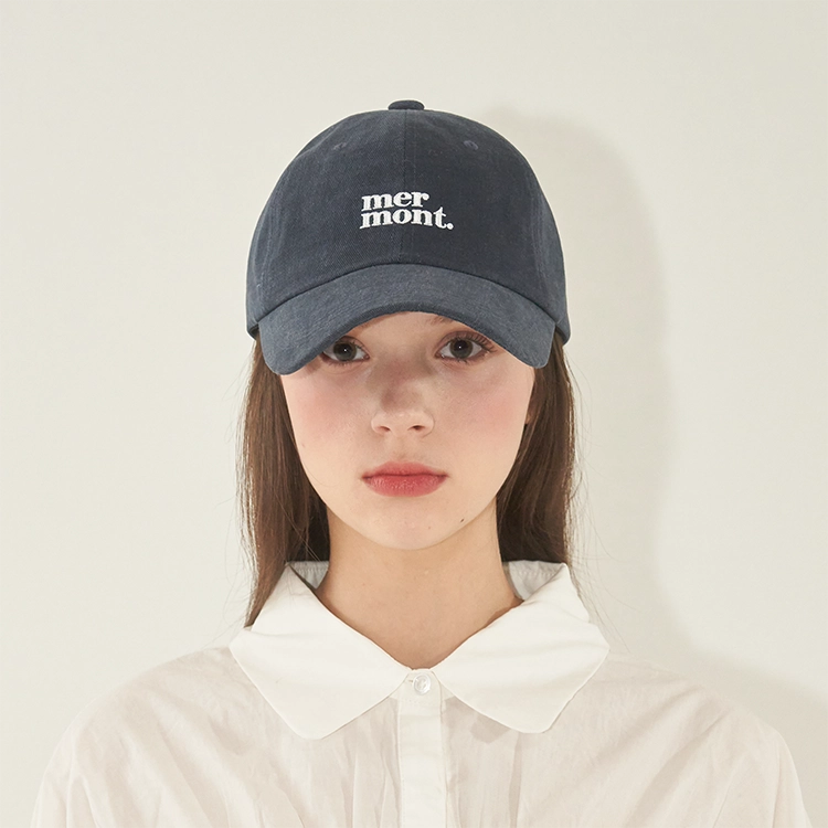 메르몽의 시그니처 자수가 들어간 볼캡입니다. 워싱이 들어간 피그먼트 네이비 원단을 사용했습니다.