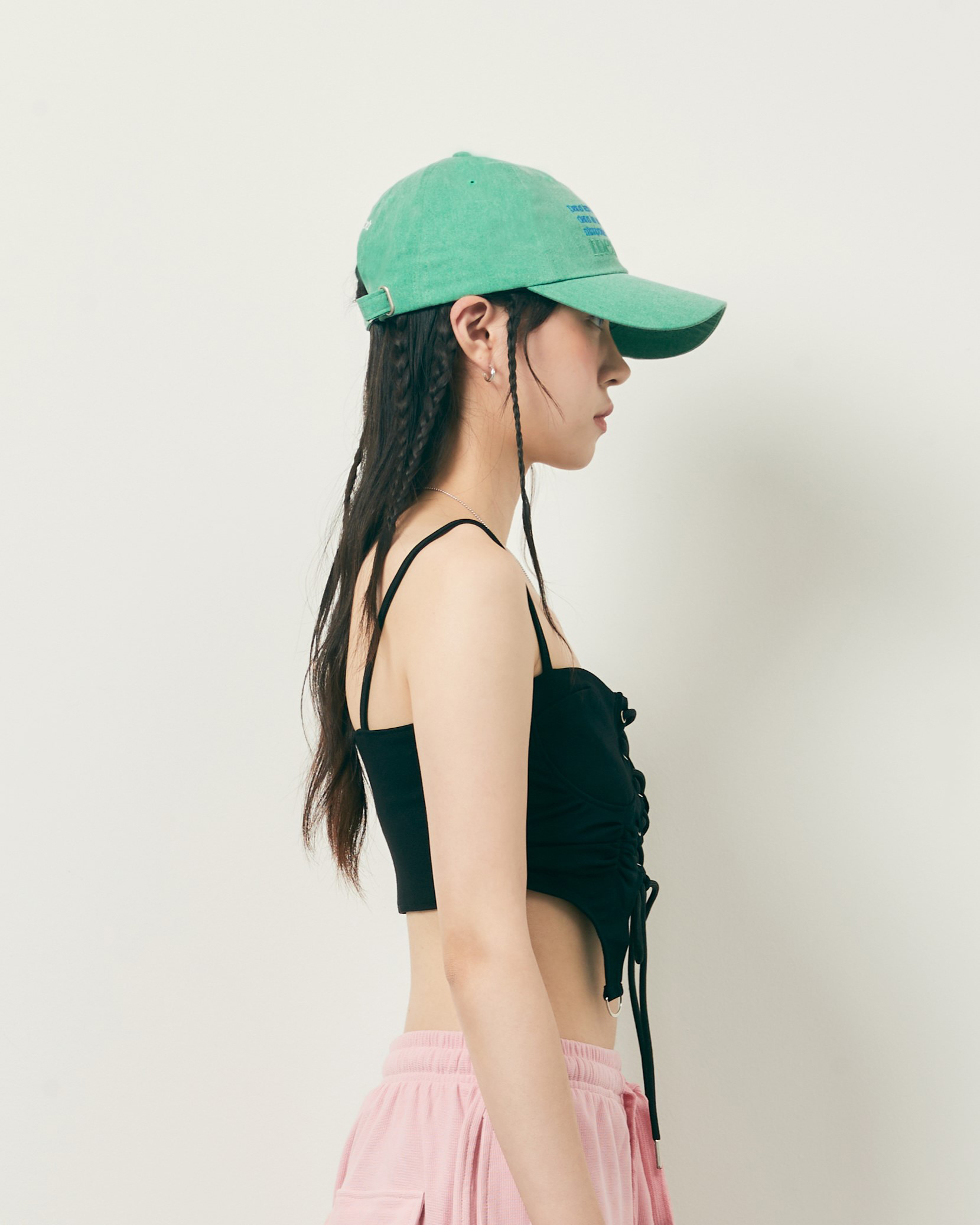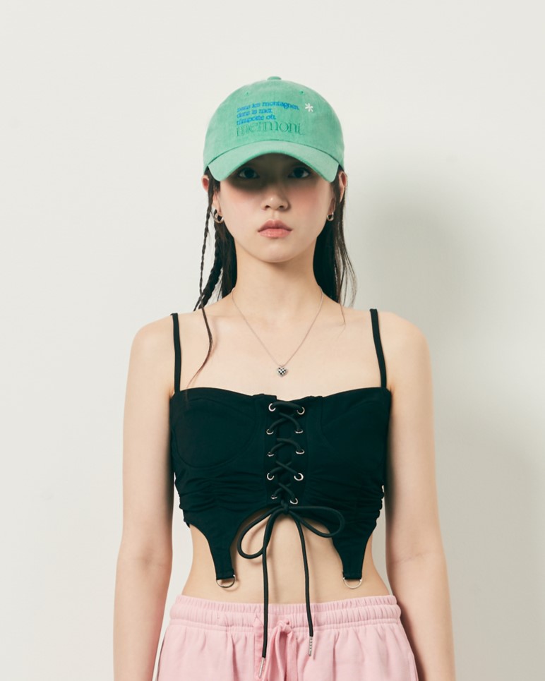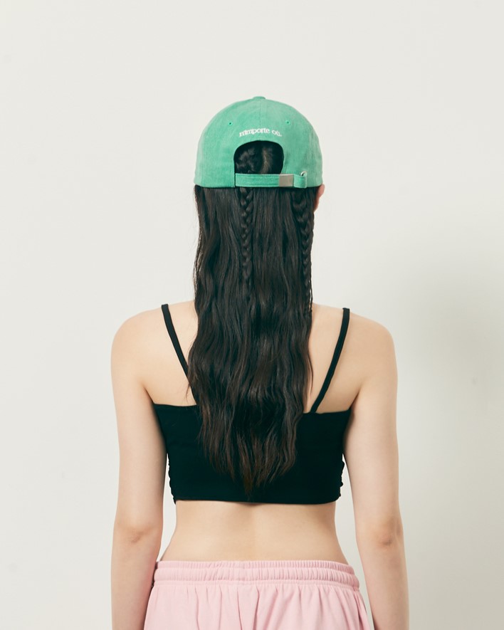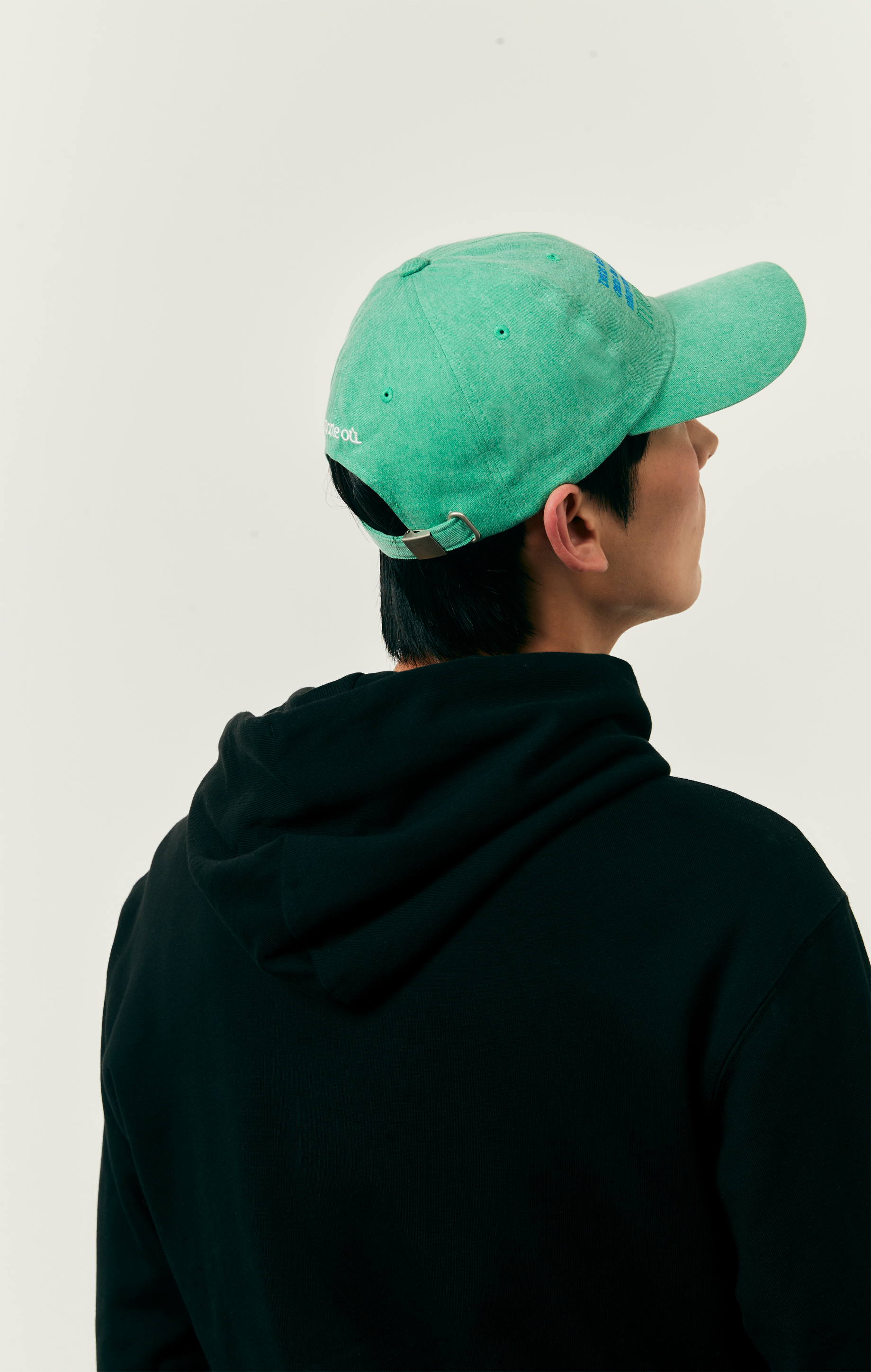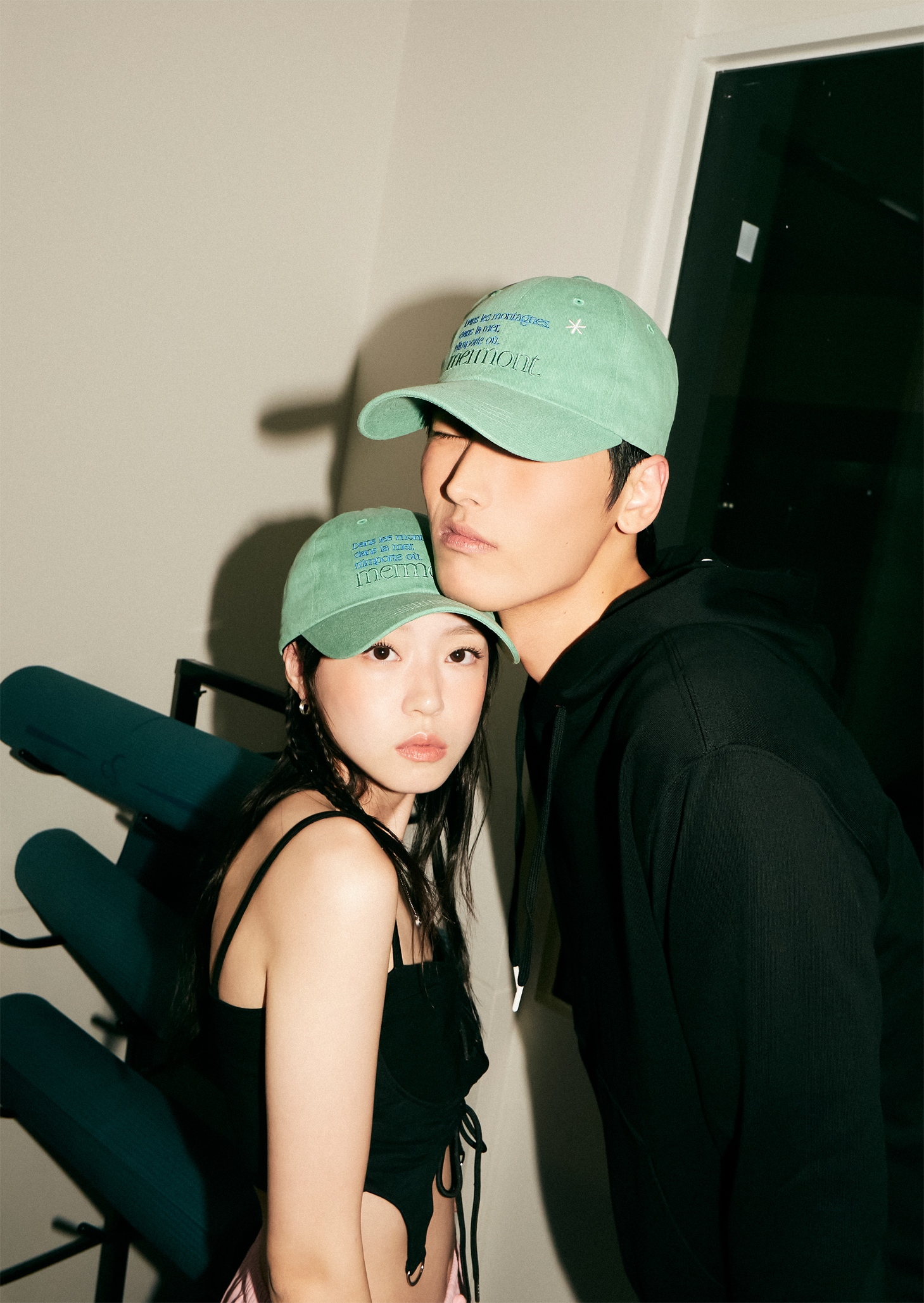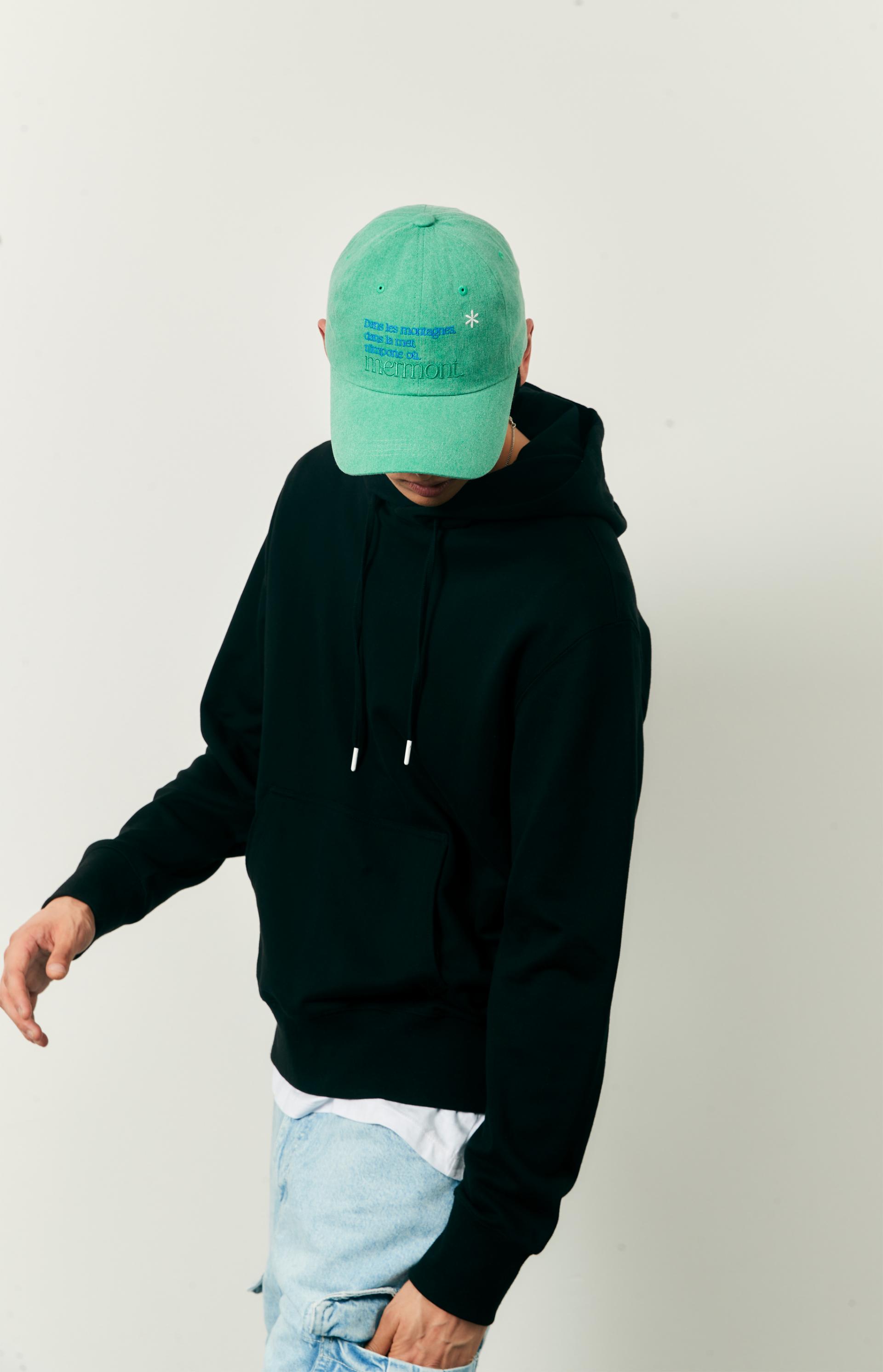 메르몽의 새로운 자수가 표현된 볼캡입니다. 워싱이 들어간 피그먼트 그린 원단을 사용했습니다.