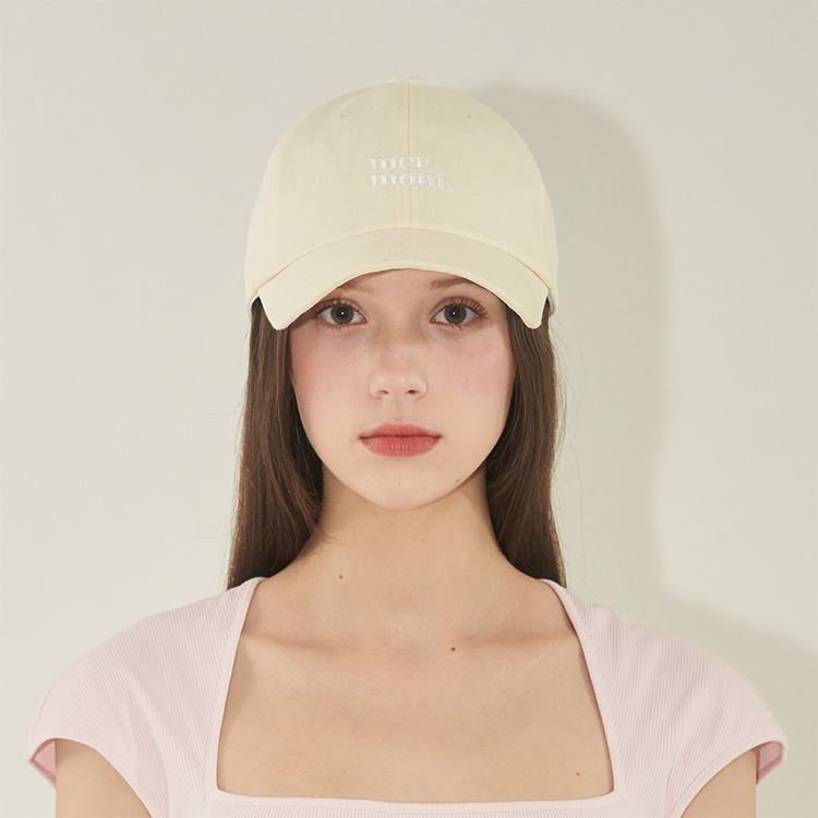메르몽의 시그니처 자수가 들어간 볼캡입니다. 아이보리보다 진한 크림컬러의 원단을 사용했습니다.