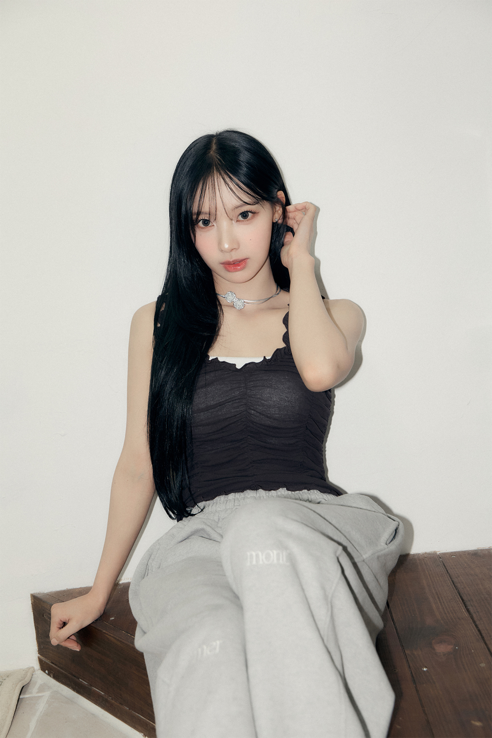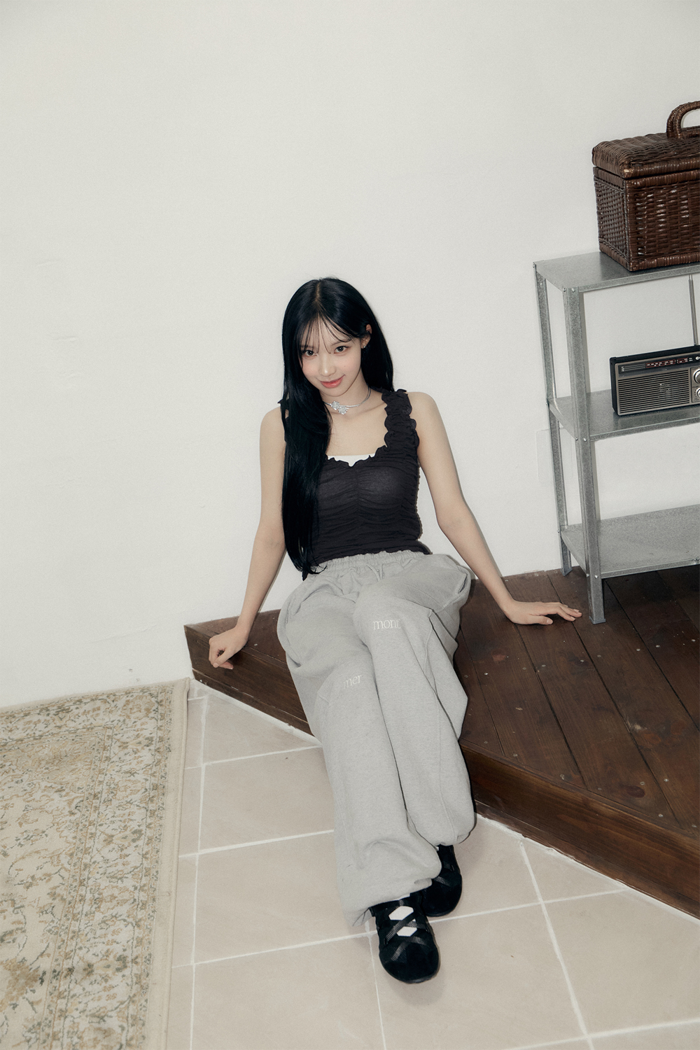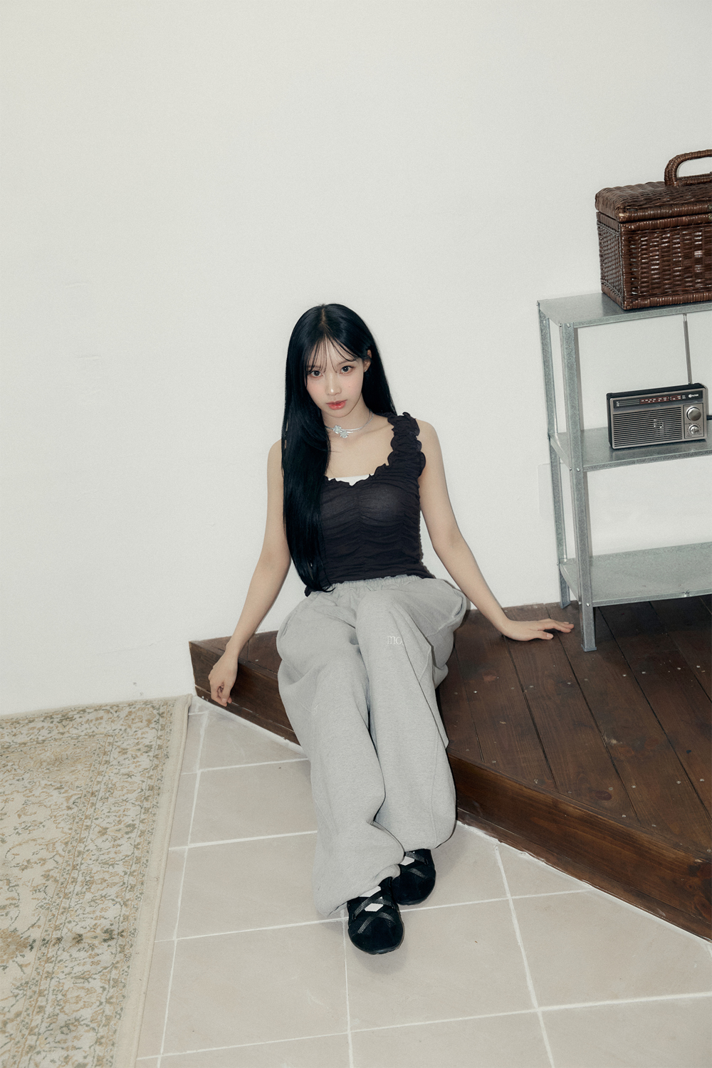 전면 핀턱 디테일로 입체감 있는 실루엣을 완성했습니다.